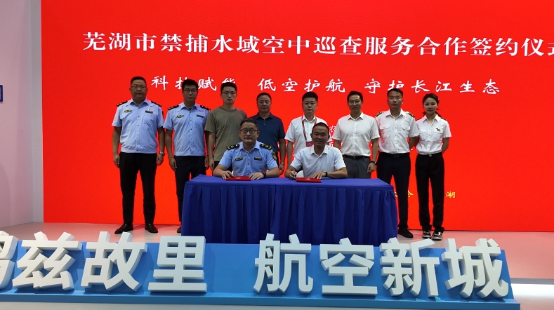 9月5日,在2025芜湖低空经济发展大会上,芜湖市农业农村局与安徽西航通用航空有限公司签署芜湖市禁捕水域空中巡查服务合作协议。这一合作标志着我市低空经济在长江十年禁渔应用新场景的落地,助推我市长江禁捕执法监管手段迭代升级,全面拥有“千里眼”的能力。市农业农村局三级调研员陈太华、湾沚区委常委、副区长朱应华、安徽西航通用航空有限公司董事长王裕正、局禁捕退捕科、市渔政执法支队负责人出席见证签约仪式。