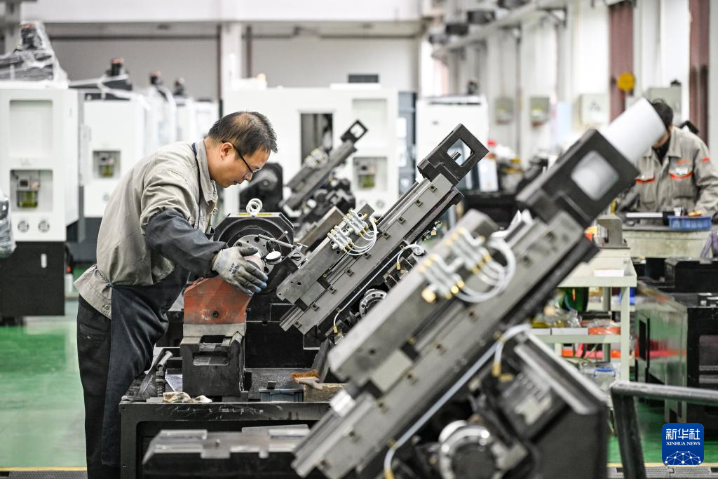 2月22日,工人在重庆宏钢数控机床有限公司总装车间作业。