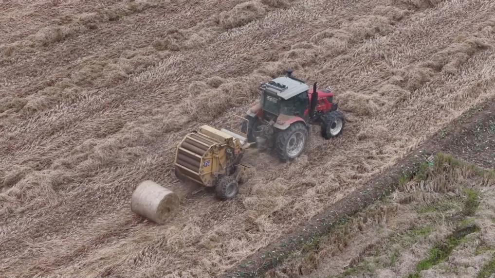 在鼎城区蒿子港镇咸庆村,散落的水稻秸秆经抓取、压缩、打捆,被送往就近的回收点。这些秸秆可以加工成饲料或有机肥,或用来制作可燃烧的生物颗粒。