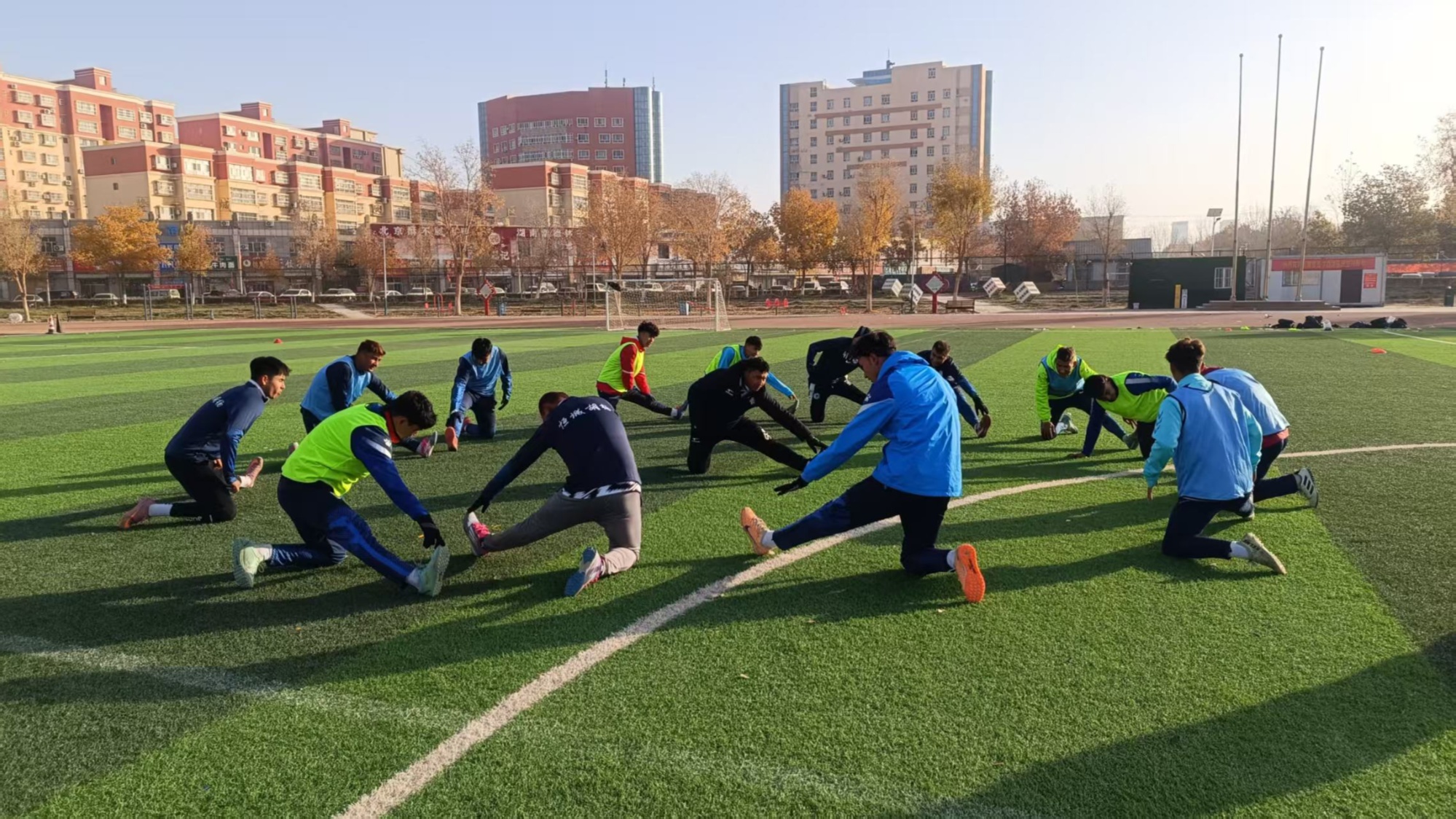 11月24日,在巴楚县体育中心足球场,队员们攻防合练不停歇,对传球、跑位、射门等技术反复打磨。教练组根据参赛球队的技术特点制定专属战术,从体能强化训练,到战术推演分析,再到分组对抗演练,各项训练有序推进。