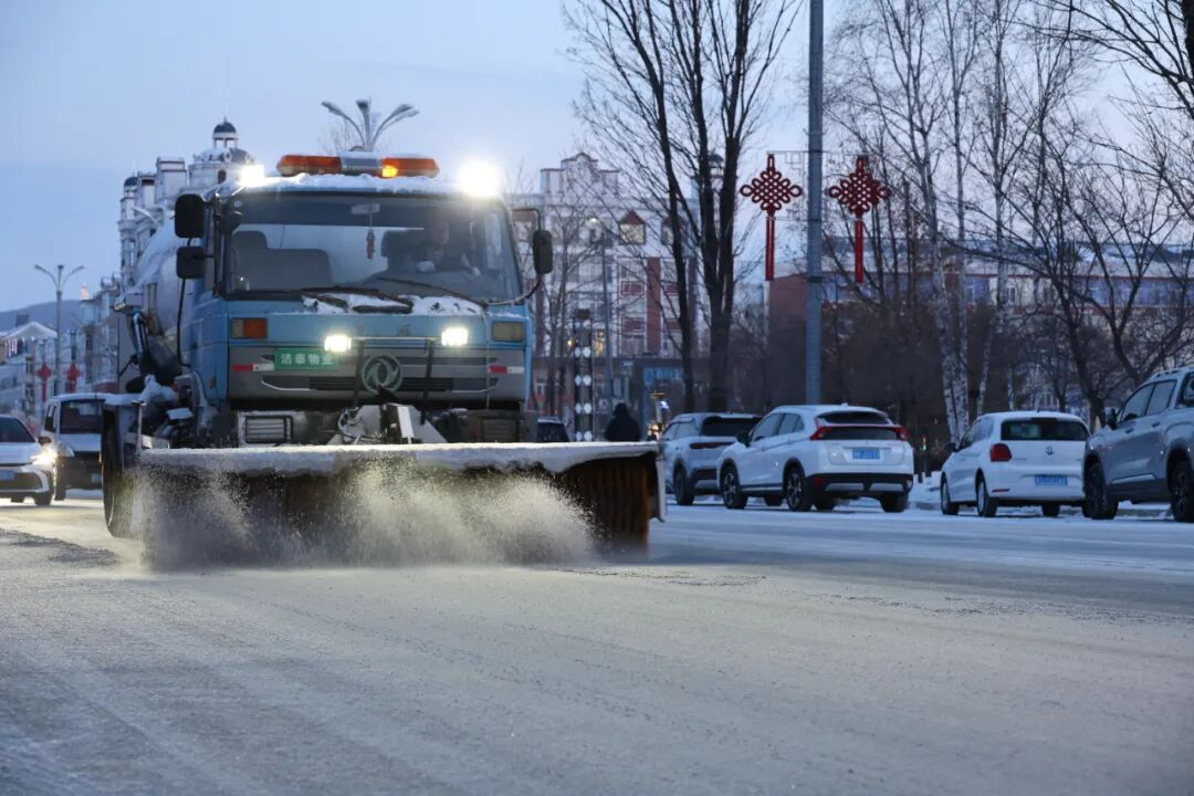 农场公路管理分公司反应迅速,第一时间调配了滚刷车等专业清雪设备,在农场的主要公路和桥梁上有序作业,滚刷有力地转动,将积雪快速清扫到道路两侧,为车辆和行人开辟出一条条畅通的通道;与此同时,物业公司出动了滚刷车,还组织环卫工人投身场区清雪工作中。环卫工人分成多个小组,分工明确、相互配合。他们手持扫帚、锹等工具,对场区内的道路、楼前屋后等区域进行细致清扫。