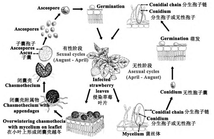 草莓白粉病病原菌的生活史 资料来源:杨俊誉