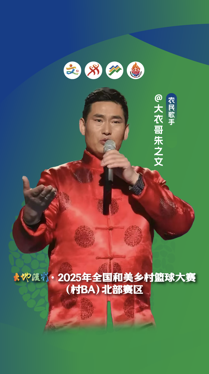 大地流彩·2025年全国和美乡村篮球大赛(村BA)北部赛区火热来袭! 农民歌手大衣哥#朱之文 将亮相开幕式现场,用歌声助力全国“村BA”,为农民运动员们加油!