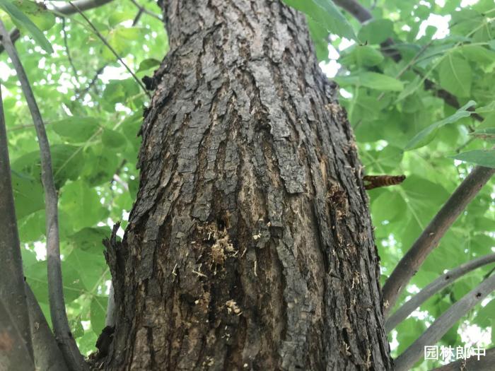 在前文中我也正是通过虫孔的形状和木屑的形状,判断出这里是云斑天牛在进行危害。