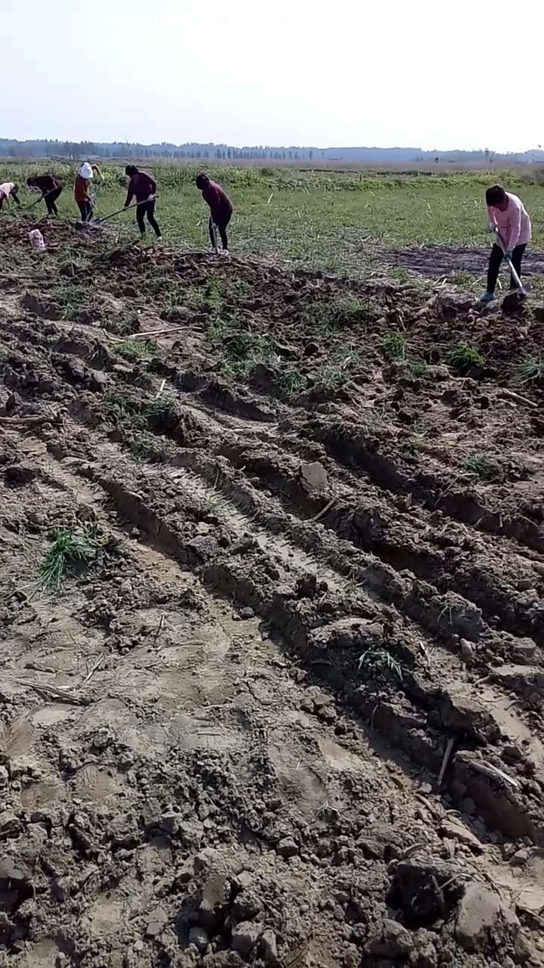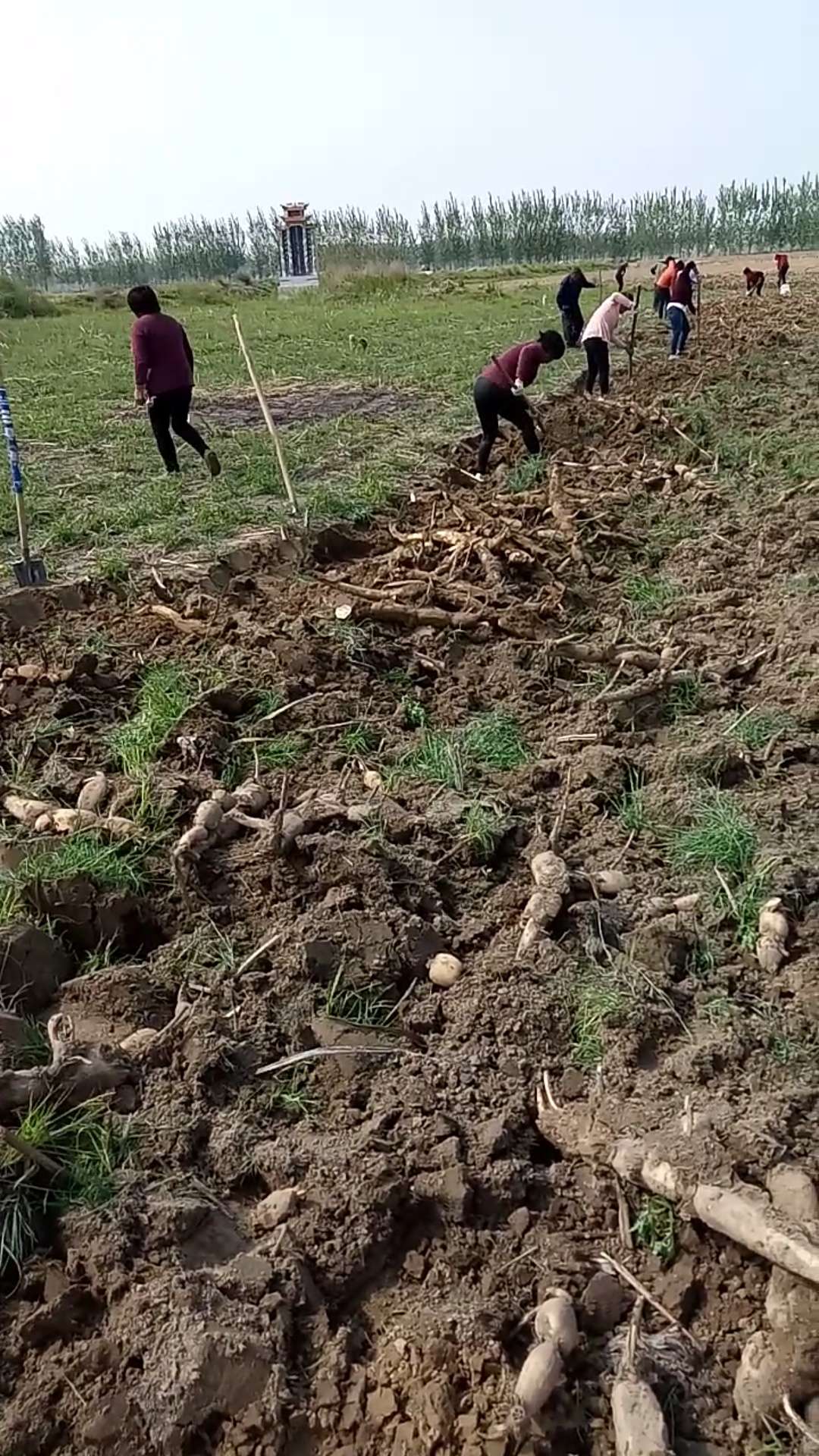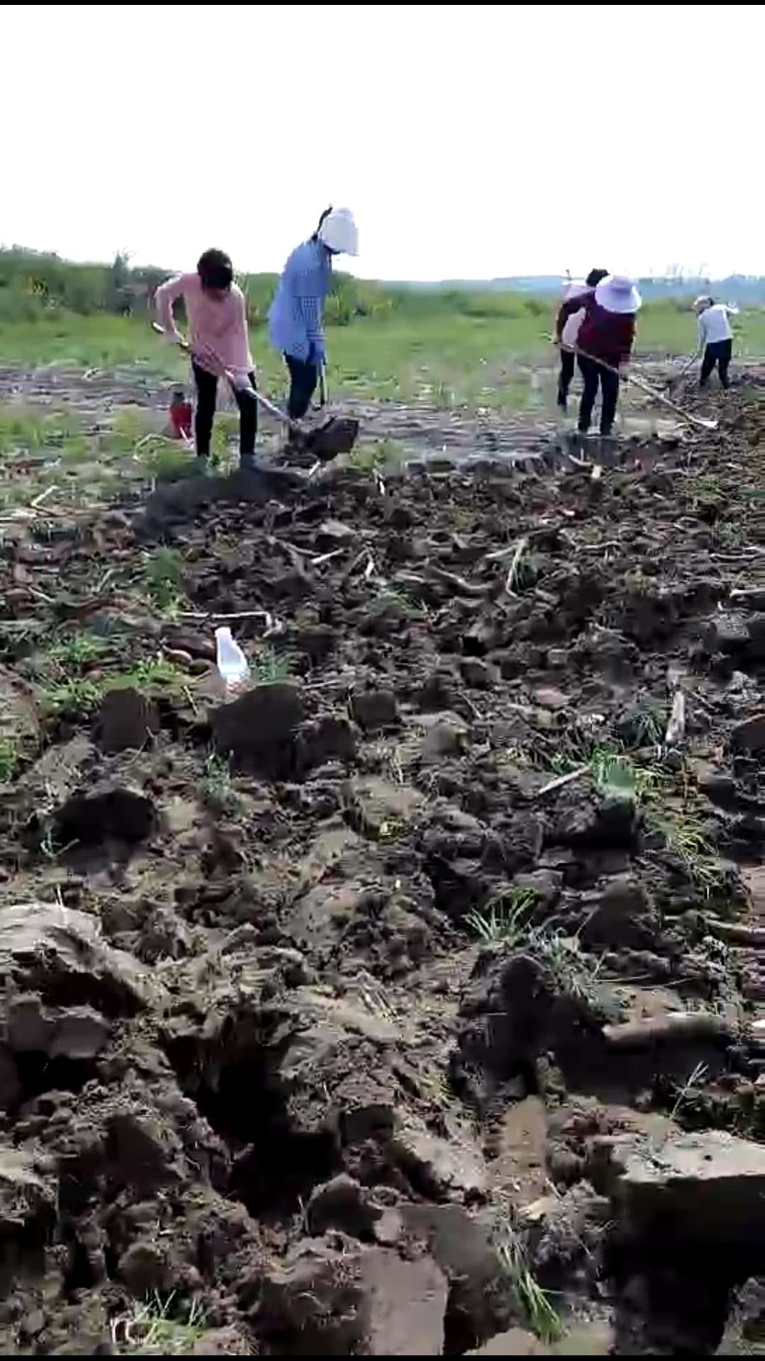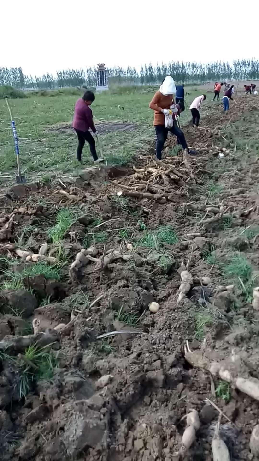 在田里人工挖莲藕