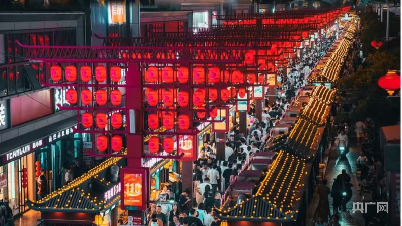 央广网银川10月7日消息(记者李畅)10月6日傍晚,位于宁夏银川市西夏区的怀远夜市已是灯火如昼。辣条摊前的长队蜿蜒过街,辣糊糊汤底咕嘟作响,烤蛋、羊杂等特色摊位前食客摩肩接踵。这片国家级夜间文化和旅游消费集聚区,正以旺盛活力印证着银川文旅融合的显著成效——10月1日至5日,这里接待游客超53万人次,实现收入5149万元,而这股热潮的背后,是西夏陵、贺兰山东麓酒庄与夜市构成的黄金文旅消费链在强力驱动。