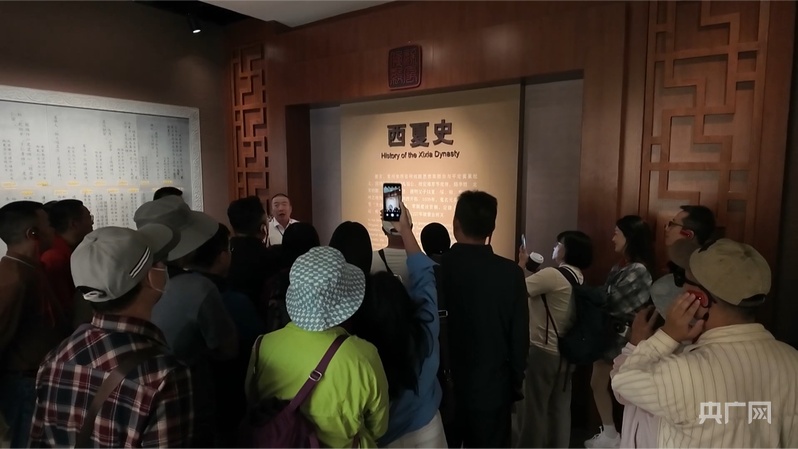 展厅里,游客专注聆听西夏史讲解(央广网记者 李畅 摄)