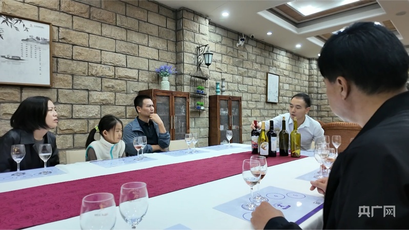 酒庄内,游客们惬意品酒(央广网记者 李畅 摄)
