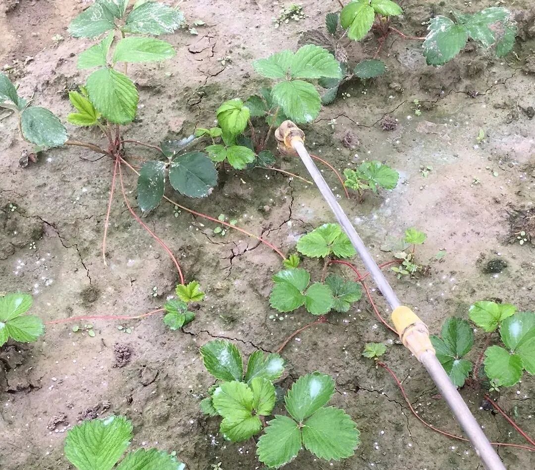 此时追肥主要目的是促根壮苗,使母株多抽匍匐茎,可根据据母苗长势每隔15-20天对母株进行一次施肥,亩施平衡型复合肥(20-20-20)10公斤,给母株及匍匐茎的生长提供营养。7月底以后,为促进子苗健壮、花芽分化充实,可以增施磷、钾肥,也可叶面喷施0.5%的磷酸二氢钾。这里要注意的是,千万不要冲施含有激素肥料,否则影响花芽分化进程。为防苗期植株缺钙及其它微量元素,造成子苗缺钙梢焦质量下降,从匍匐茎抽生的最旺季5月开始,每个月叶面喷施2-3次钙、硼肥,可有效减少此类现像的出现。