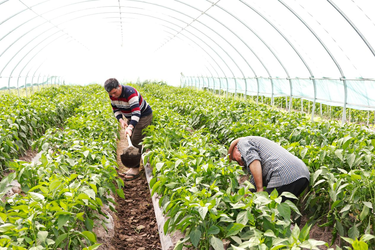 辣椒种植基地里,村民正在进行田间管理 (田富鑫 摄)