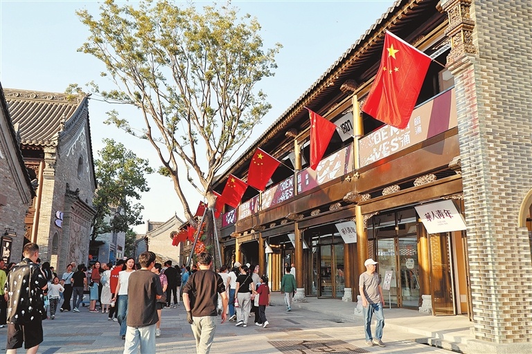 9月30日,郑州亳都·新象文化商业街区人头攒动、游人如织,洋溢着浓厚的节日氛围。(记者 聂冬晗 摄)