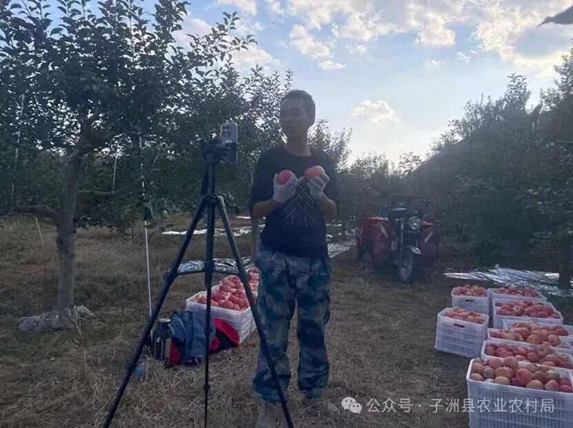 12月2日,在子洲县马岔镇黄柏沟村苹果储藏库,一位皮肤黝黑的年轻人正对着手机屏幕热情推介:“咱们黄土高原的山地苹果日照足、温差大,咬一口,脆甜爆汁!”