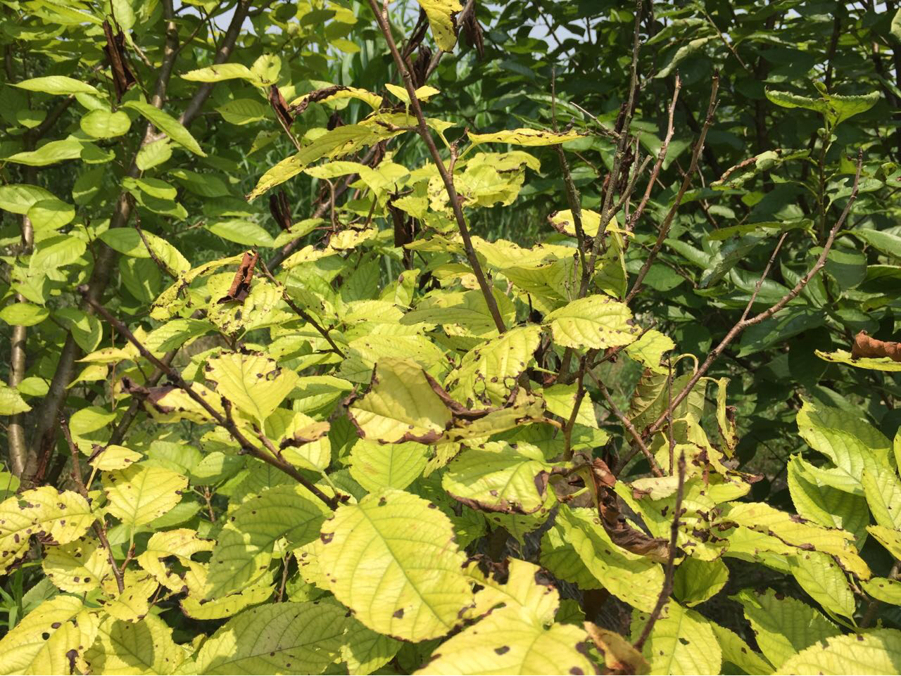 @黄科 :您好!永州市祁阳县龚家坪镇九曲河村樱桃种植大户,种植了几百亩食用樱桃,已种植了五年。今年已上市, $果蔬$ 现有小部分樱桃树出现了、烂叶、枯叶、枯枝、叶片发黄,请您给予宝贵的经验指导防治