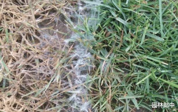图为草坪上的灰白色菌丝