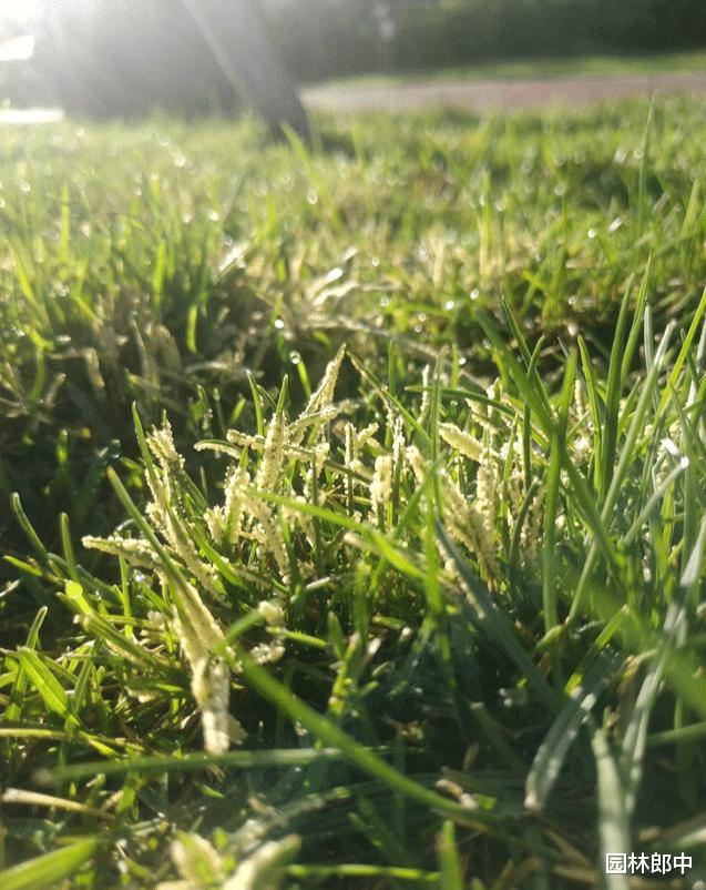 而且除此之外,有时候还会发现这些草坪草的叶片上沾满了密密麻麻乳白色的球状小颗粒,看起来就像是小念珠一样,不知道怎么回事儿?