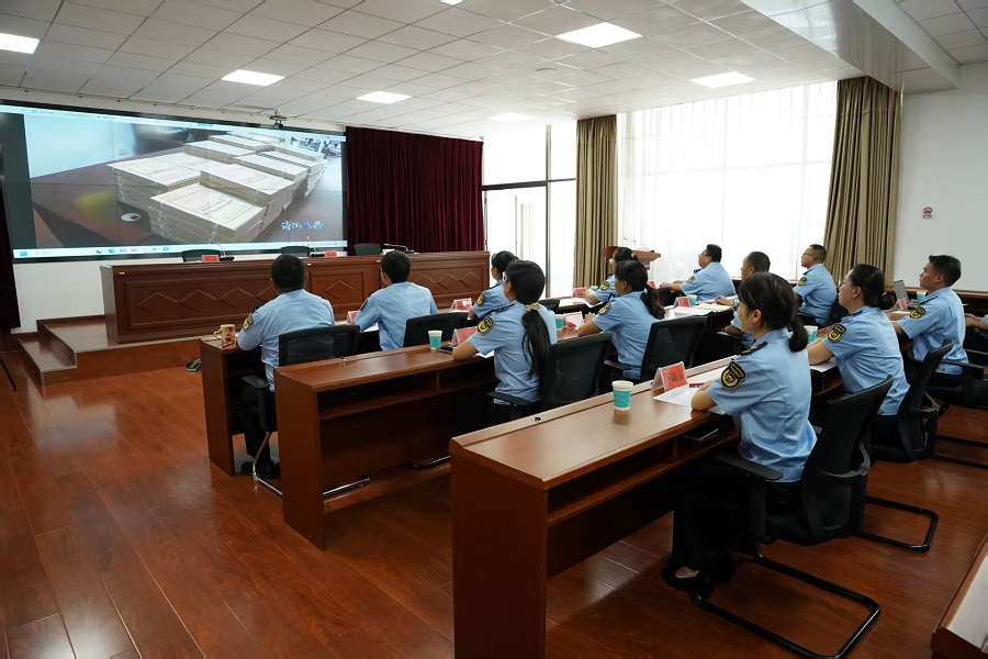 观看警示教育片(8月25日摄)。供图