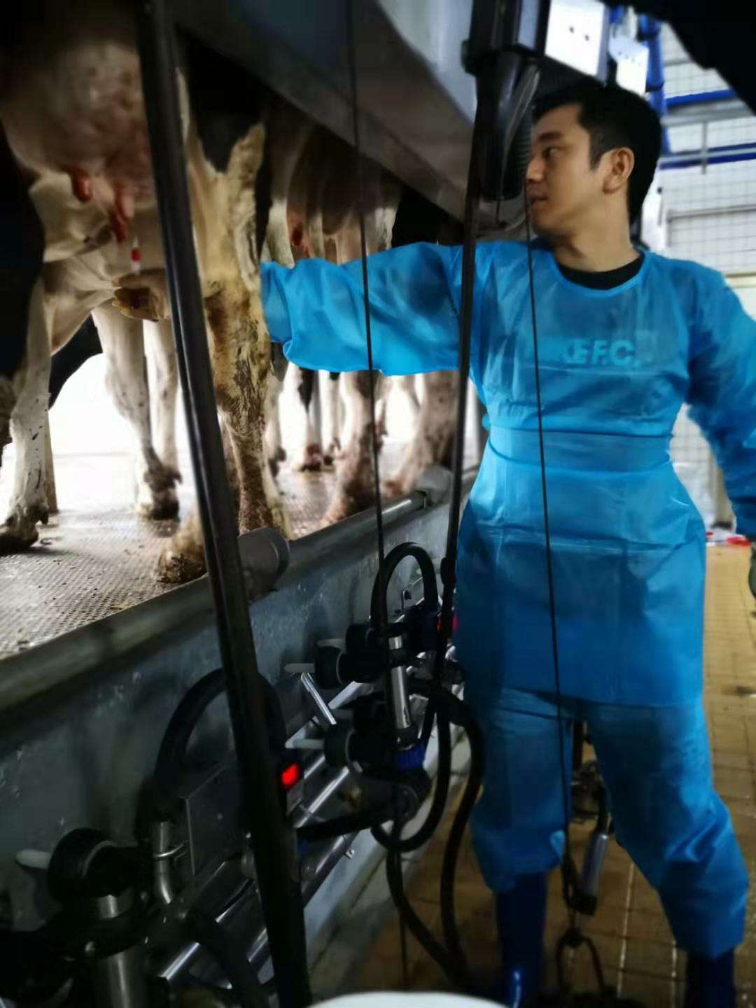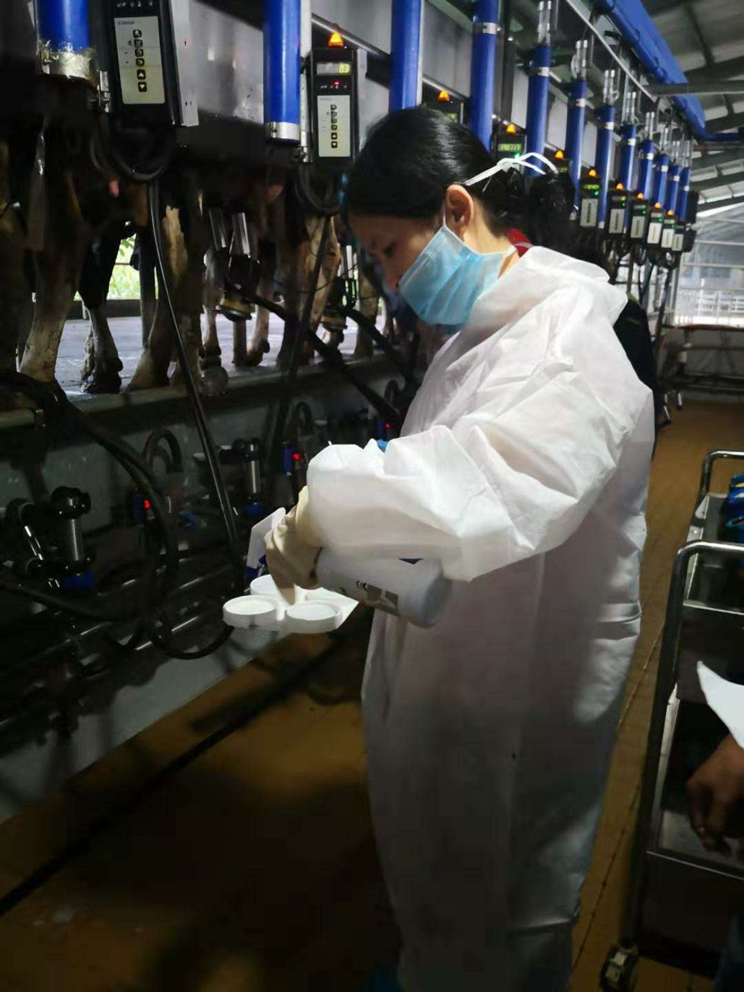 2019年6月24日、27日,省草食动物产业技术体系育种岗位专家团队成员前往南山牧场和湖南省奶牛原种场采集了乳房炎患病牛奶样和血液样品,同时对南山牧业牛场数据员进行了数据管理培训。