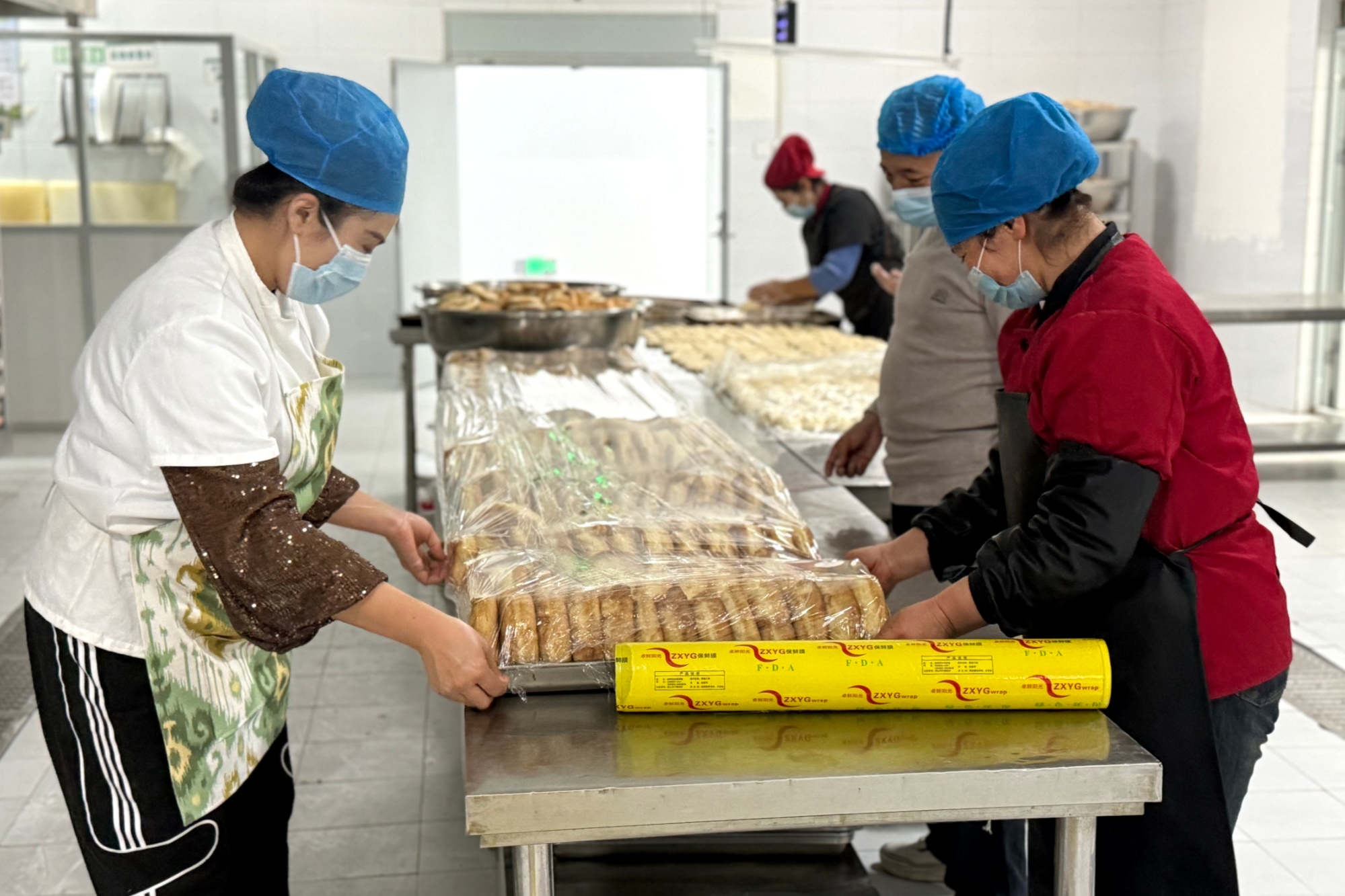 食堂工作人员将牛奶馕装盘 (艾孜再姆 摄)