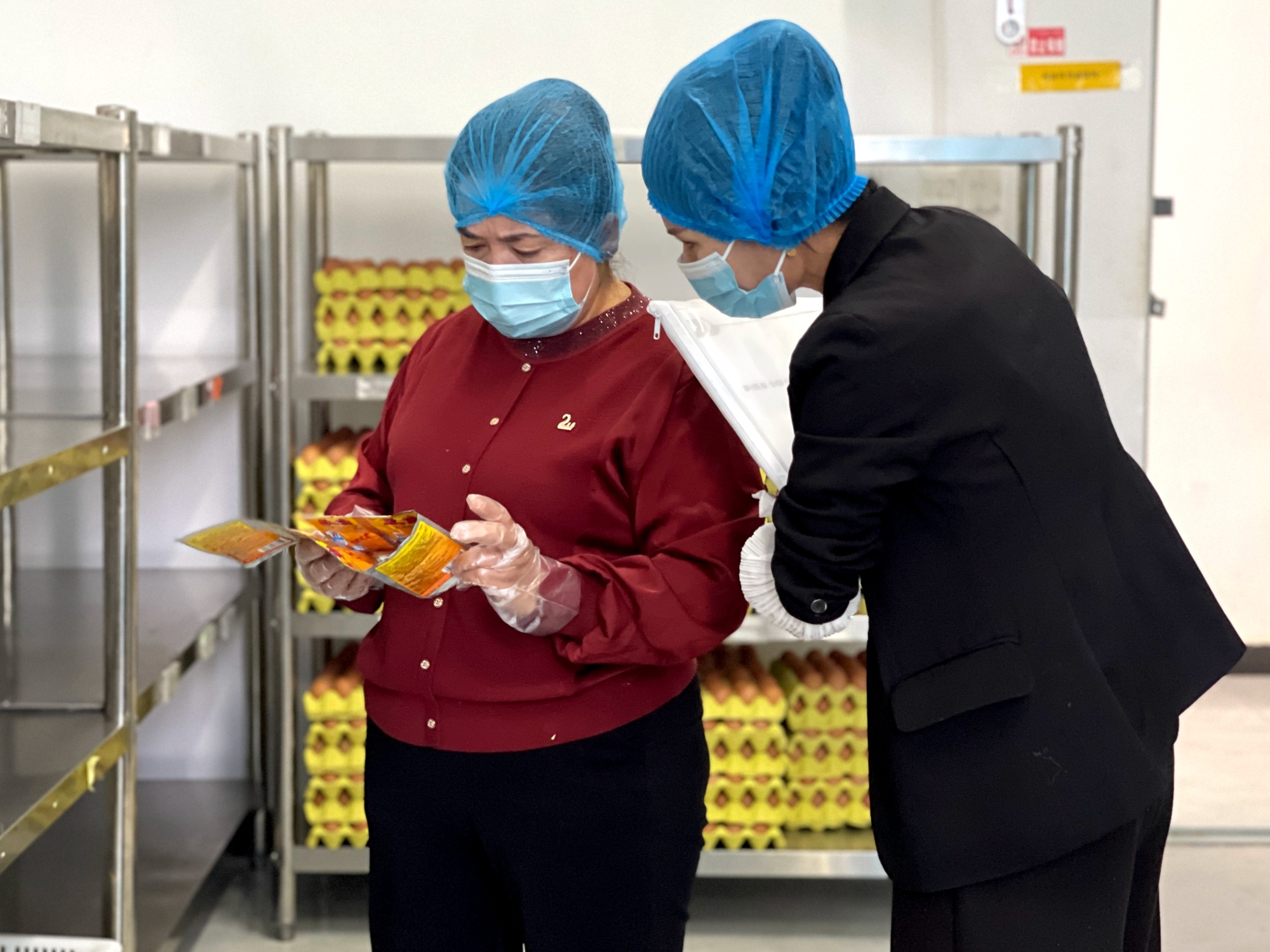 工作人员登记食品保质期 (喀伍力江 摄)
