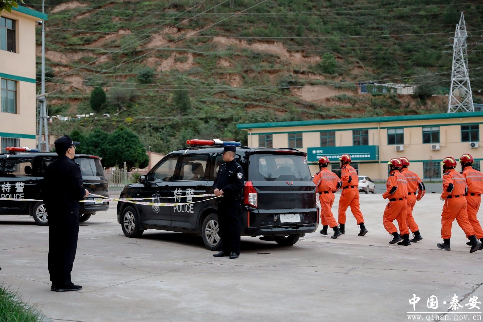 演练现场,模拟警情突然触发——“330重要变电站遭不明身份人员袭击,企图破坏电力设施,严重威胁电网安全!”接到报警后,秦南派出所迅速启动反恐应急预案,第一时间联动特巡警大队,警力快速集结并赶赴事发地;与此同时,国网天水供电公司、国网秦安县供电公司同步响应,抢修队伍携带专业设备火速抵达现场,形成“警电联动、同步处置”的应急格局。