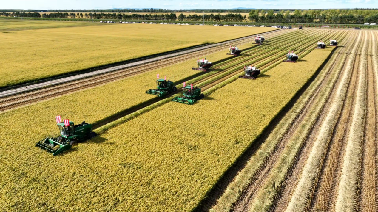同江市农业农村局政策法规股股长张琬婷说:“今年,同江市水稻种植总面积达9万亩,其中特色优质品种如龙粳、莲汇系列占比超过60%。我们通过推行水稻田间精细化管理、订单农业和绿色农业,实现了品质、产量连年稳步提升。当前,我市正从糯稻开始陆续推进水稻收割工作,确保在最佳收获期完成颗粒归仓,为保障国家粮食安全贡献‘同江力量’。”