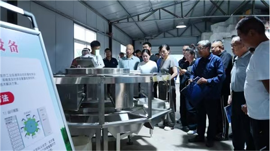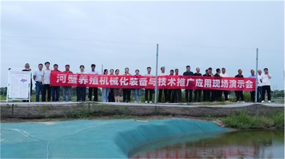 在现场演示环节,县鑫旺生态水产养殖专业合作社技术人员向大家介绍了目前河蟹养殖中运用的微孔增氧、自动分拣机、无人机投料、水车式增氧等农机装备,与养殖大户就机器购买价格、作业效率、保养维修和电商直播等方面进行了探讨。