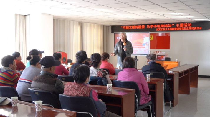 近日,在西夏区贺兰山西路街道学院社区,一堂简洁易懂的智能手机操作课程正在进行,老师向老人们介绍了查找联系人、相机拍摄、骚扰电话拦截等基本功能和一些常用软件的使用方法,社区工作人员还手把手帮助遇到问题的老人。