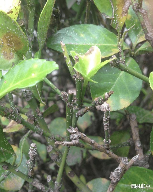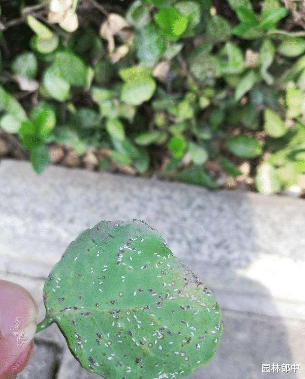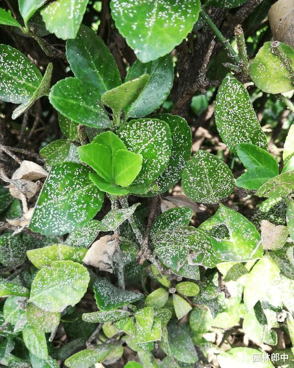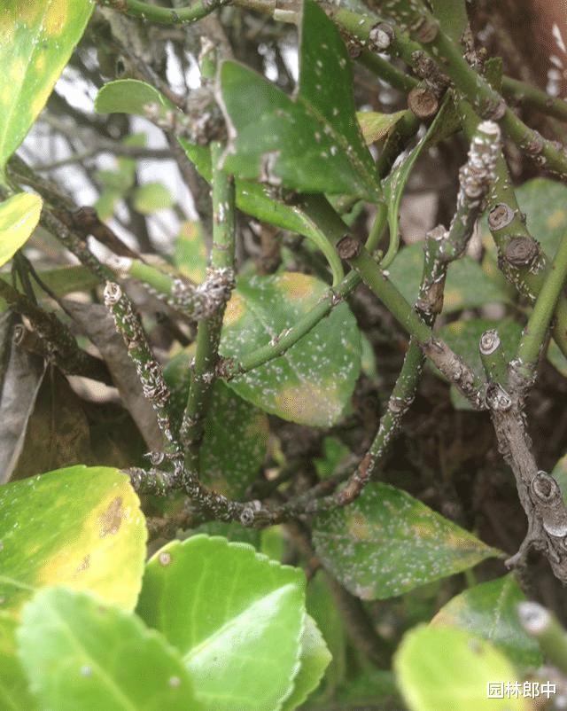 图为大叶黄杨枝干及叶片上密密麻麻的小白点