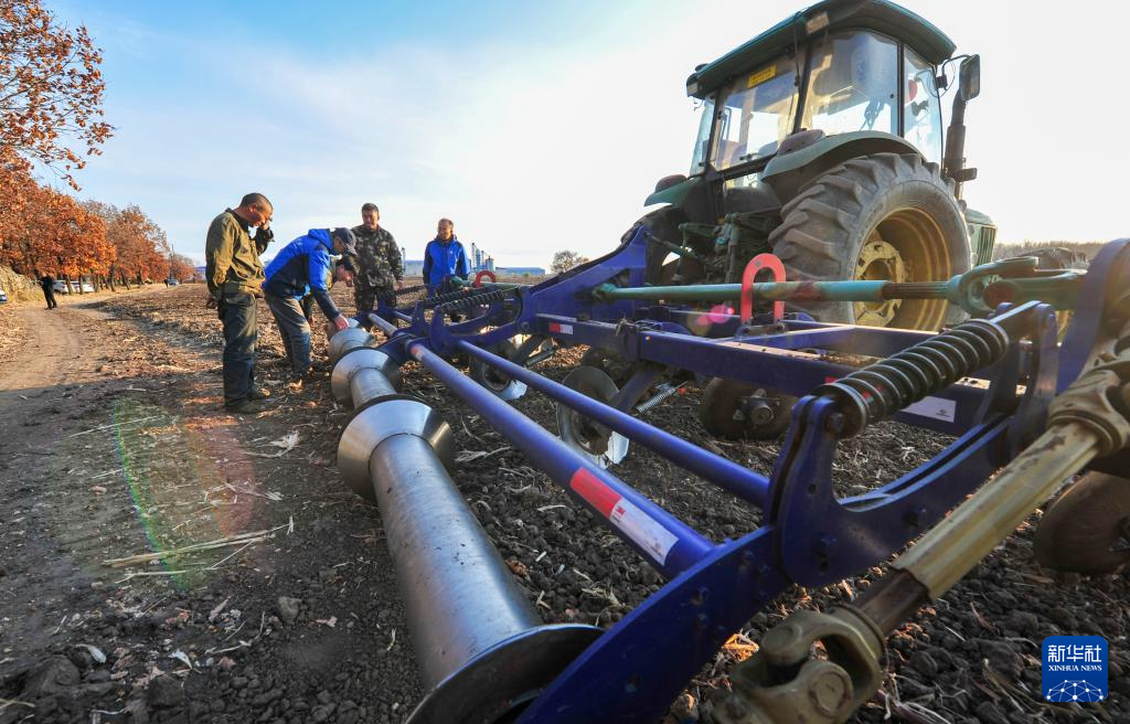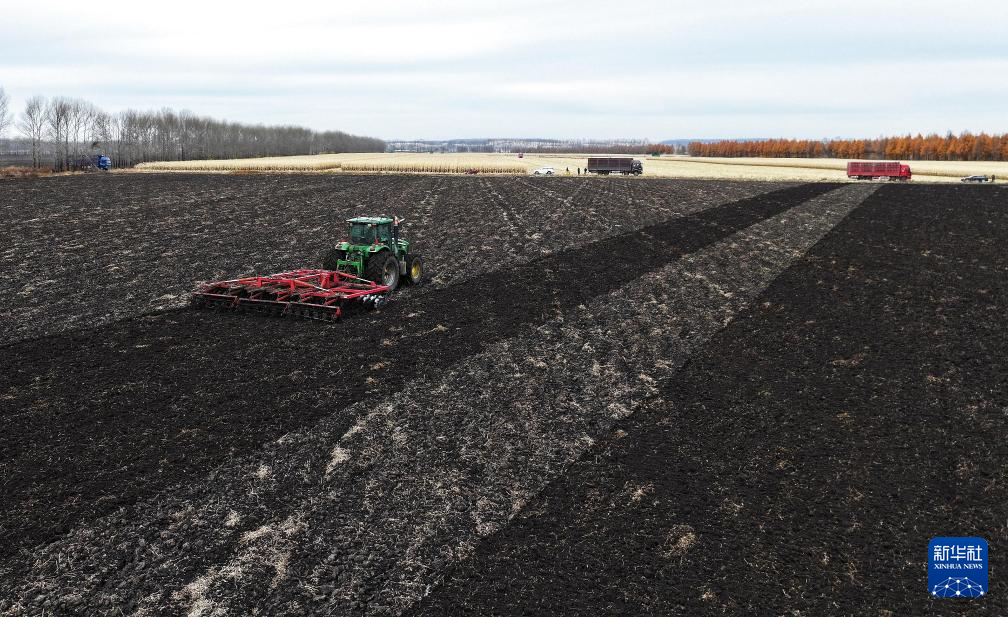 10月16日,在北大荒集团黑龙江五大连池农场有限公司田间,联合整地机械在进行秋整地作业。