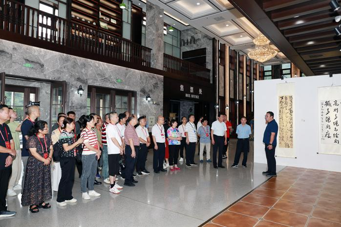 活动中,劳模们不时驻足讨论书法作品中的中医药内涵,部分劳模还向现场工作人员咨询中医养生知识。