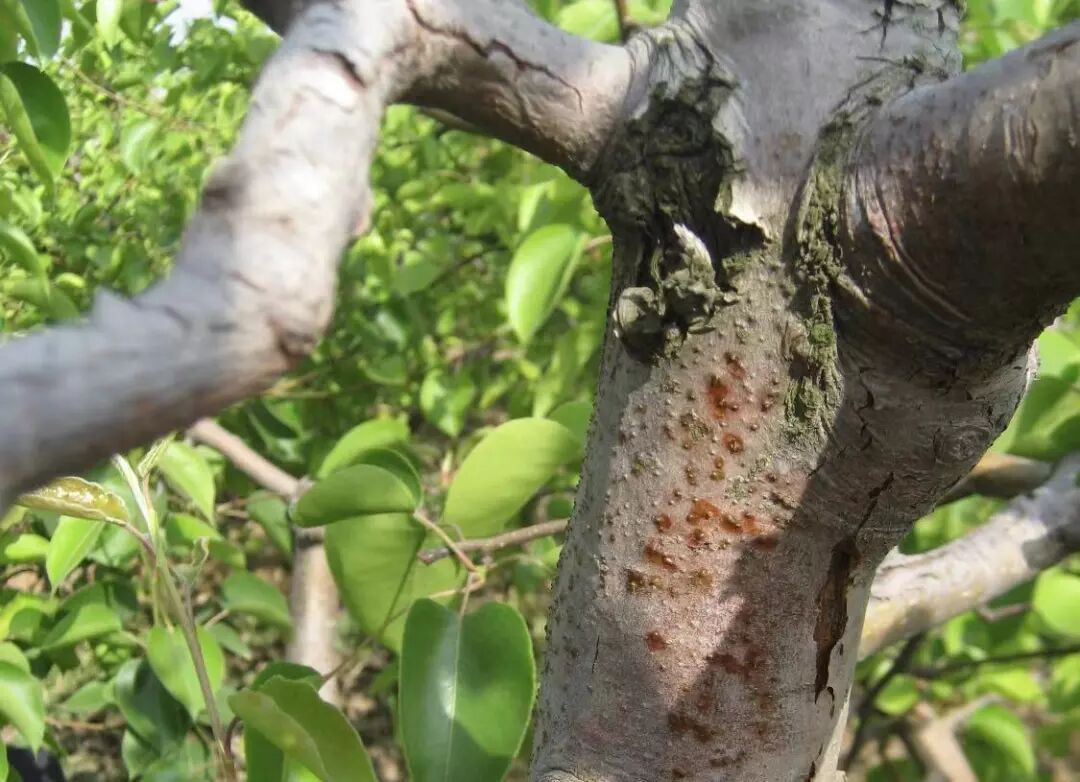 由于枝条徒长、土壤黏重、排水不良的园子该病发生较重,因此加强园区管理如科学修剪、合理挂果、加强肥水等是预防的关键。枝干感病的刮除后用溃腐灵涂抹,发芽前可喷施多菌灵、福美双等减少病原。