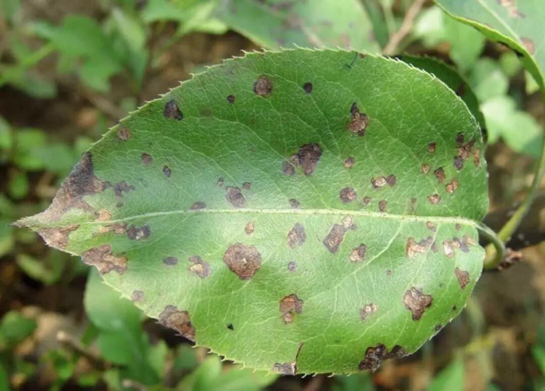 梨黑星病是一种检疫性病害,病原为子囊菌亚门黑星菌属的纳雪星菌,可危害梨树地上部大部分幼嫩组织,并以叶片、果实为主。