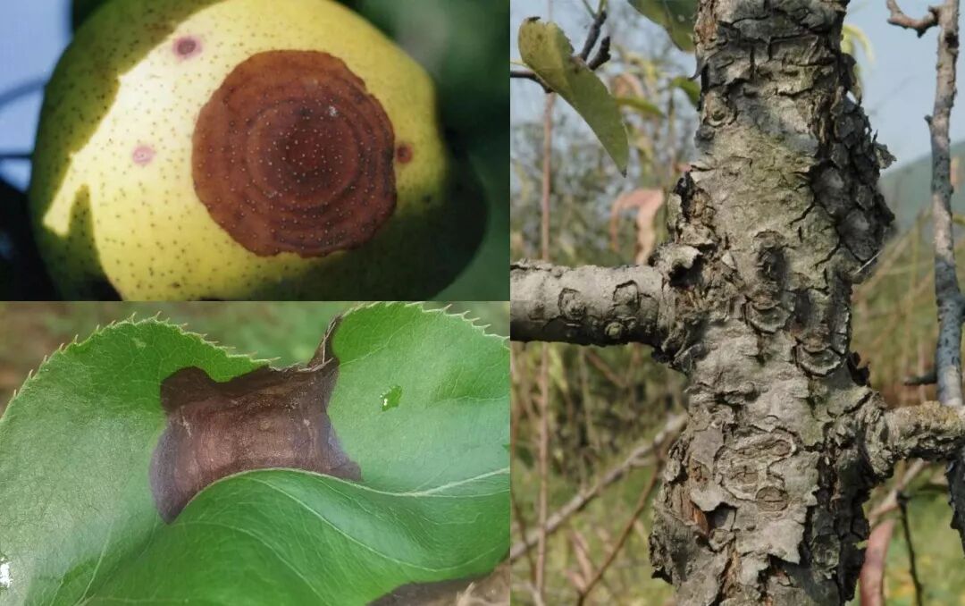 梨树轮纹病菌是弱寄生菌,具有发病快、危害大等特点,主要侵害枝干、果实,在叶片上也偶有发生。