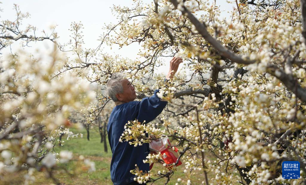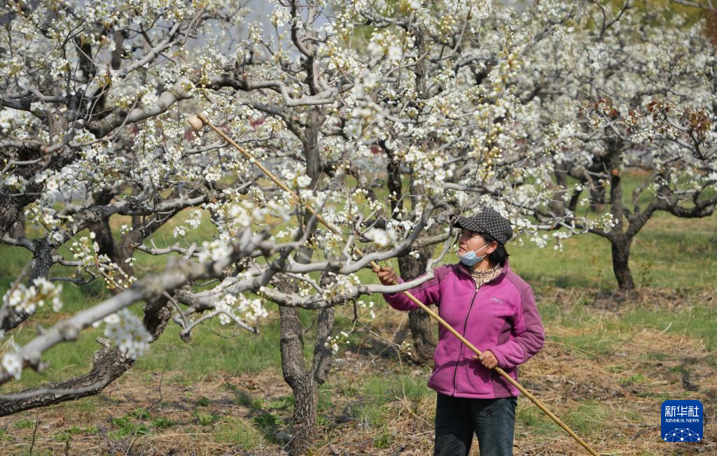 近日,山东省滕州市柴胡店镇梨园内梨花陆续盛开,当地果农抢抓农时,开展人工授粉工作,为保障梨的产量和品质打好基础。柴胡店镇种植梨树历史悠久,目前全镇梨树种植面积达5000余亩。