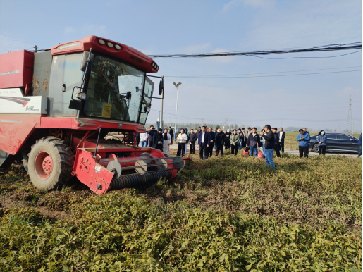 活动分为两个阶段进行。第一阶段开展花生生产机械化作业现场演示培训,现场作业机具包括花生生产秸秆处理、耕整地、植保、收获等生产环节,集中展演示花生联合收获机、花生捡拾收获机、秸秆粉碎还田机、旋耕机、高地隙自走式喷杆喷雾机、植保无人机等机具,技术人员着重围绕花生机收环节详细讲解了花生一段式收获模式和花生分段式收获模式的优劣势、田块适应性、技术要点、配套机具等,对花生联合收获机、花生捡拾收获机质量性能、作业效率、收获效果等进行对比分析介绍,为花生高质量收获提供多种解决方案。