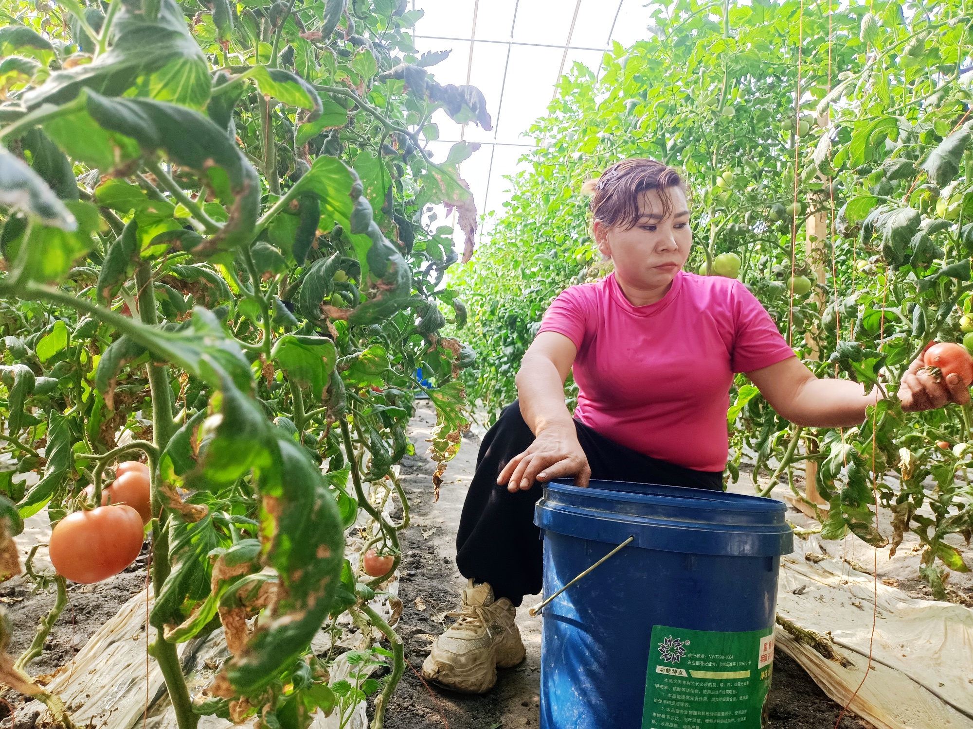 3月20日,在新疆若羌县盛世羌农设施农业种植基地二期项目现场,一座座高标准的大棚排列整齐,大棚内翠绿的藤蔓上挂满了红彤彤的西红柿。工人们穿梭其间,熟练地采摘着成熟的果实,脸上洋溢着丰收的喜悦。