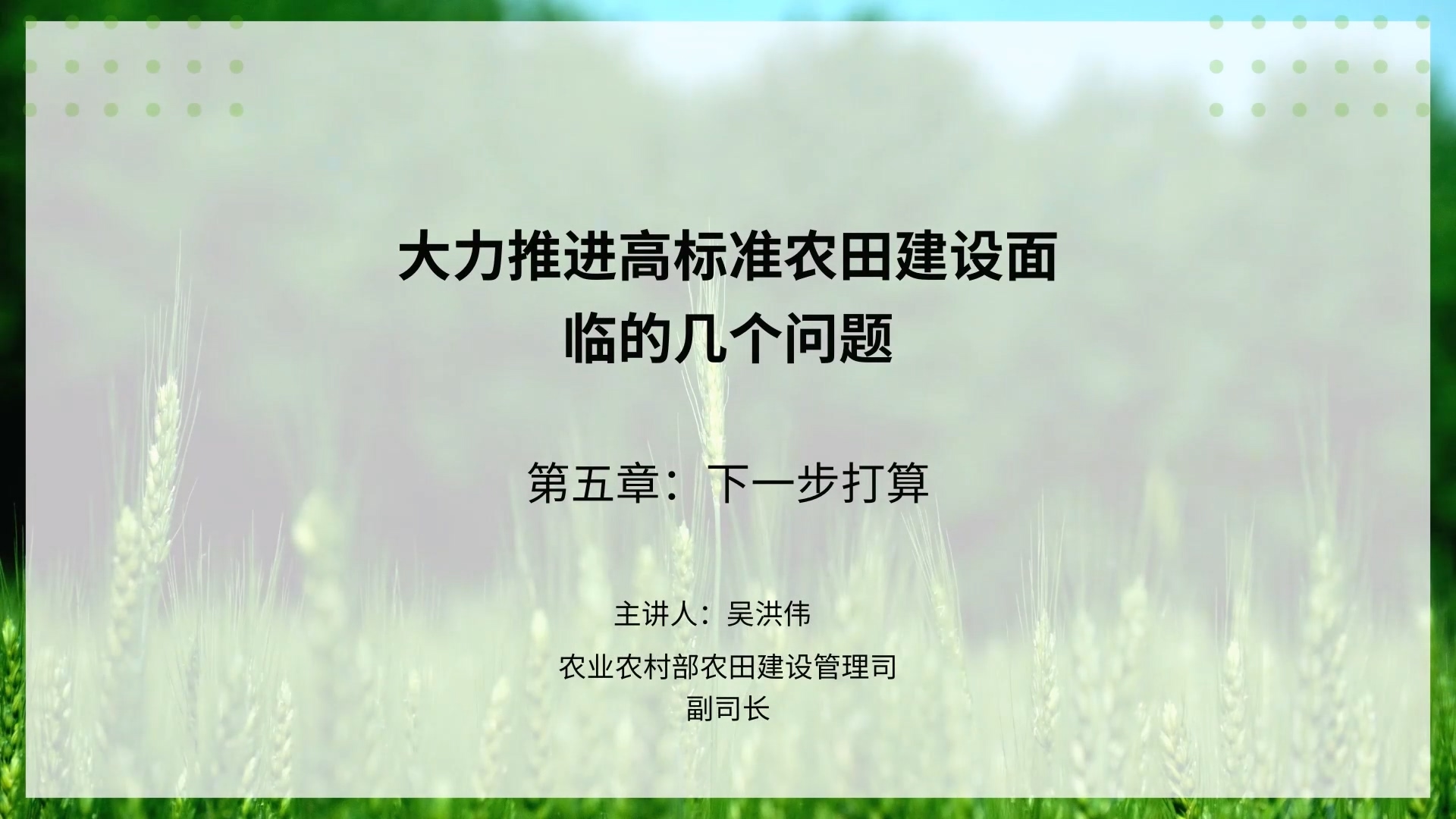 推进高标准农田建设下一步打算