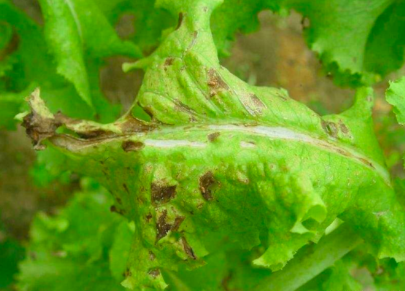 叶焦病是生菜的一种重要病害。各地均有分布。病株率为30%~ 50%,重病地块可达80%以上,显著影响生菜的产量和质量。