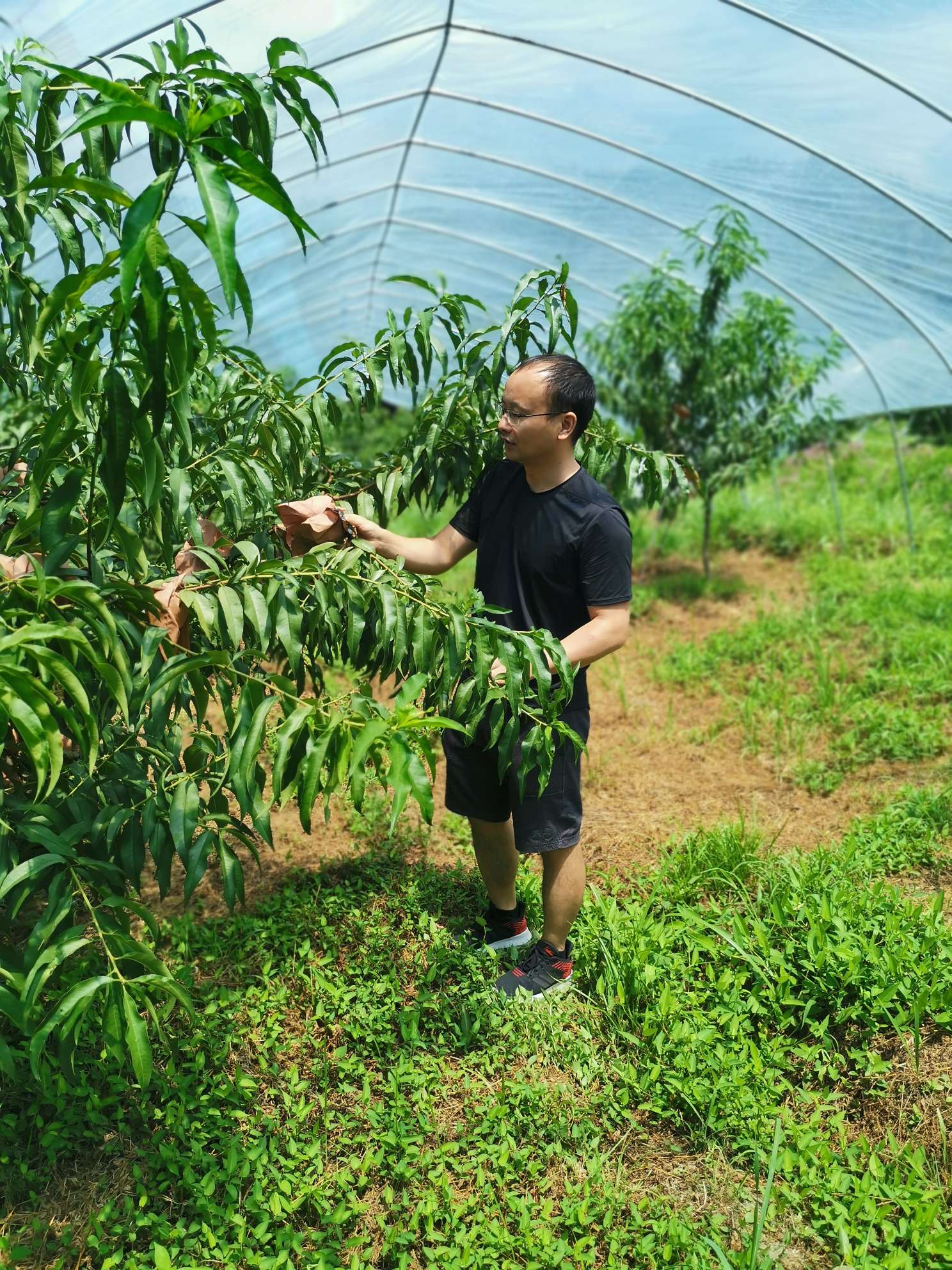 在炎陵县开展黄桃避雨栽培技术服务