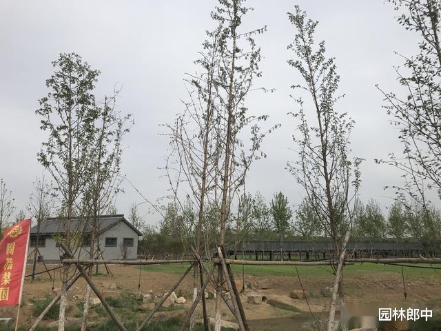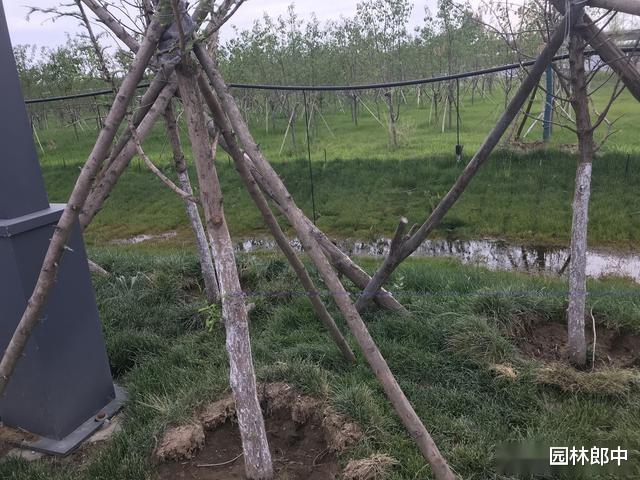 图为支撑水杉的杉木杆