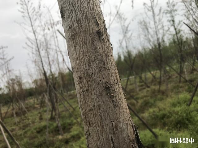 虽然小蠹虫主要危害的就是松、柏、杉这几类苗木,但是在近几年在黄葛树、法桐等苗木上也开始发现它的危害。所以说,如果发现苗木在短时间内干枯死亡的话,除了看是不是根部积水烂根之外,也要注意观察树干看看是不是天牛或者小蠹虫这些蛀干害虫在危害!