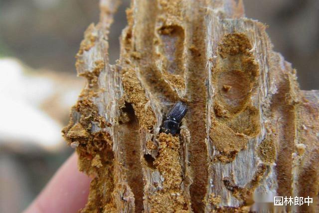 图为在主干上发现的小蠹虫的成虫
