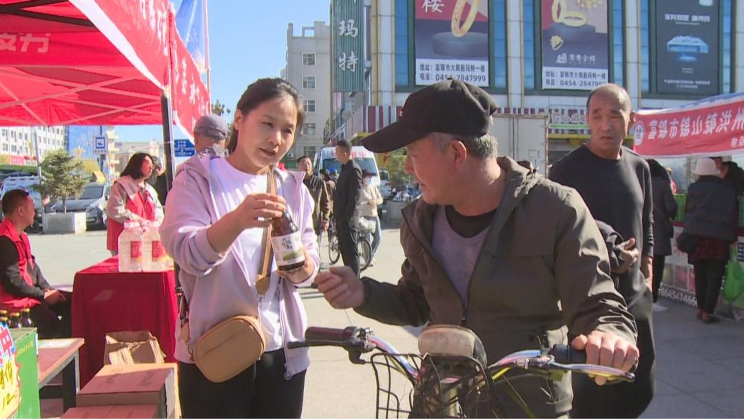 企业工作人员为市民推介产品(富锦市委宣传部供图)