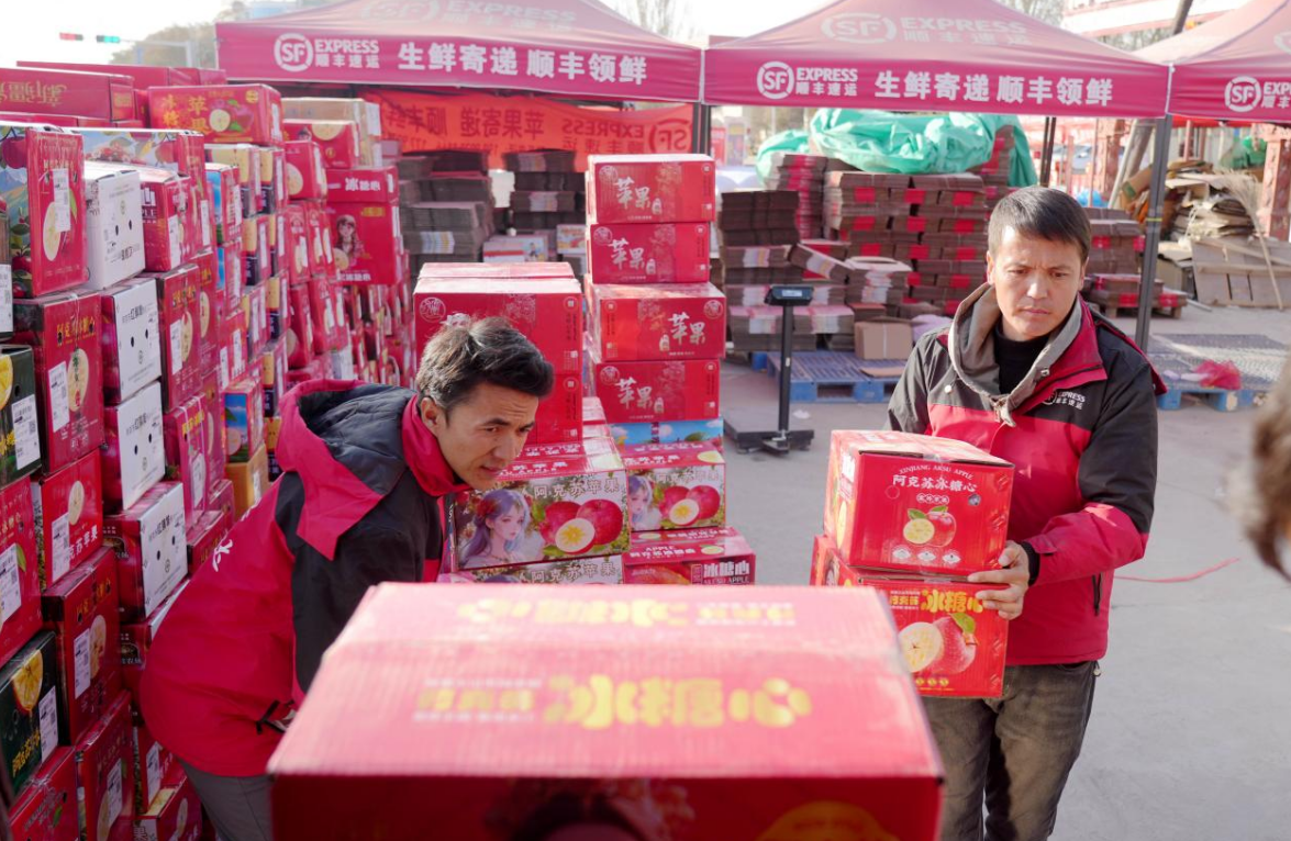 截至目前,顺丰已在温宿及周边主产区设立34个揽收点,投入117名快递员、35台运输车辆;南疆物流分拨中心增设临时智能分拣区,通过自动传送、扫码识别、精准分流等功能,大幅提升分拣效率。“进入11月苹果发运旺季以来,我们日均处理苹果快件8万-10万件,每天发往疆外20辆车,涵盖阿克苏直达北京、广州、郑州、西安、成都等6个核心流向。”顺丰阿克苏分公司副总经理蒲雷介绍,相比去年,苹果快件中转时效提升约1天,单日发运量同比增长20%至30%。