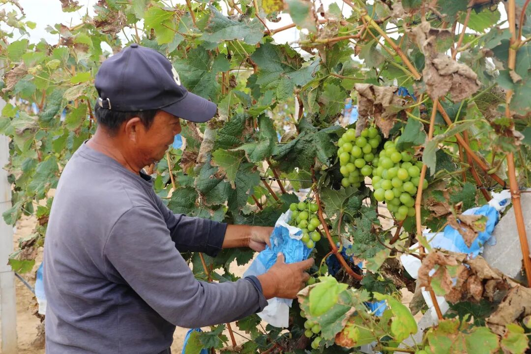 葡萄基地里,工人们弯腰采葡萄、套保鲜袋,指尖轻托果串的动作格外小心,生怕碰损饱满的果粒。种植大户杜刚穿梭在田垄间,时而驻足查看葡萄品相,时而叮嘱工人把控采收细节,谈及自家葡萄的品质,他满是自豪:“我们的夏黑葡萄颗粒饱满,甜度能到21度,比普通葡萄甜多了。为种出优质葡萄,从春季疏花疏果控制果量,到夏季采用绿色技术防治病虫害,再到成熟期精准控水控肥,每一步都严格按照精细化标准推进。今年基地葡萄亩产400多斤,品相与口感赢得市场青睐,单价卖到15元/斤,远超散户零散售卖价格。”