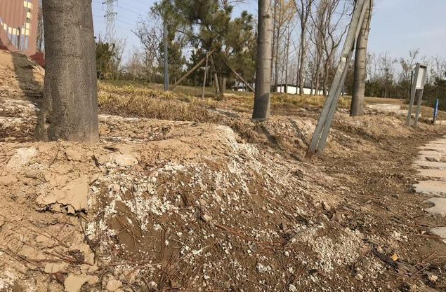 在盐碱性土壤中栽植酸性树种时,可以通过在树穴底层铺设"隔盐层"的方式,来控制地下盐分的上升。