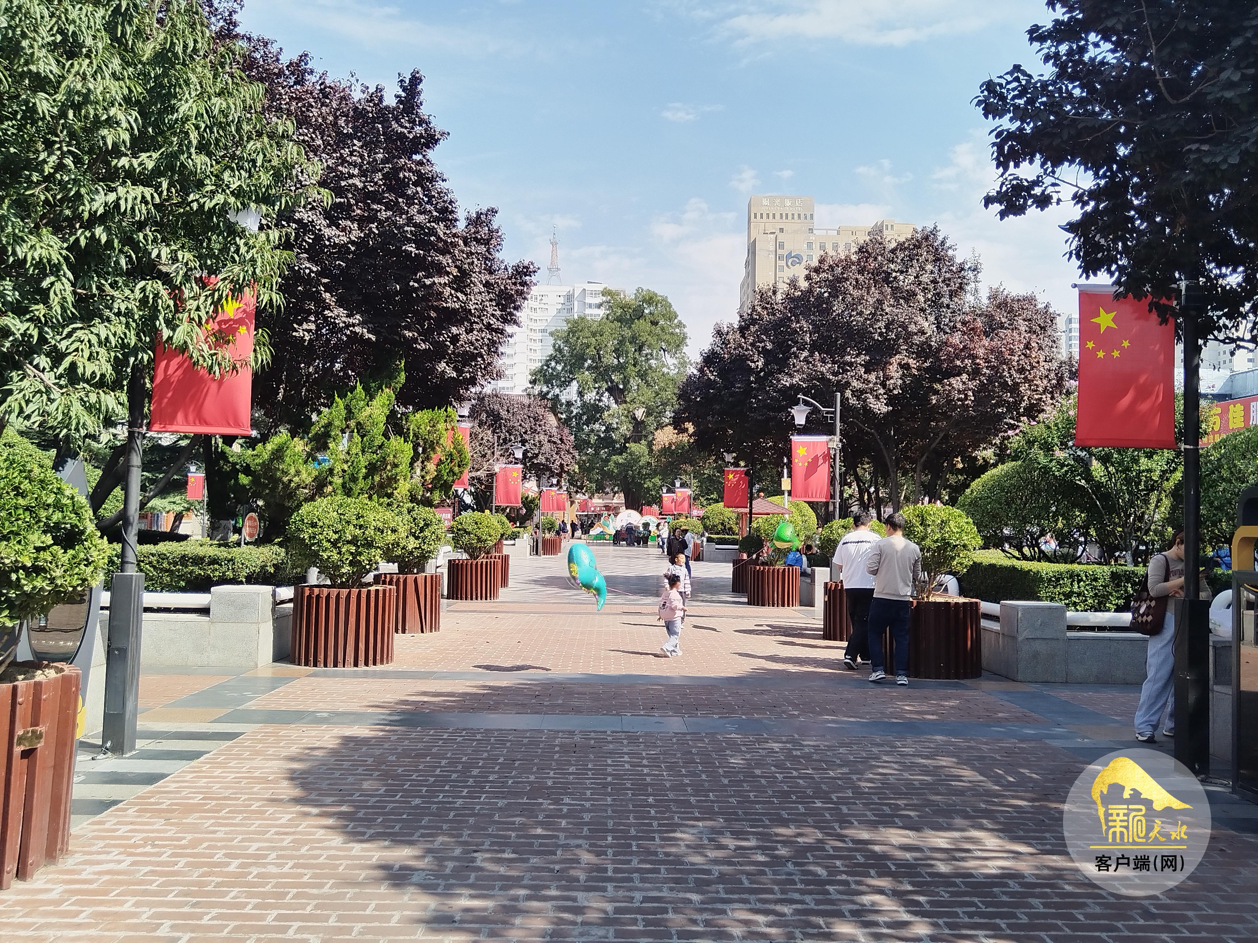记者从秦州区住建局了解到,由该局负责在龙城广场、伏羲城、中华东西路步行街、青年南北路以及玉泉路等地共悬挂国旗1020面,加上安装在大众路、藉河北路等路段灯杆上的1090个国旗灯箱,不仅在白天,当华灯初上时,这些国旗灯箱在夜里也是格外醒目,成为夜晚一道亮丽的风景。