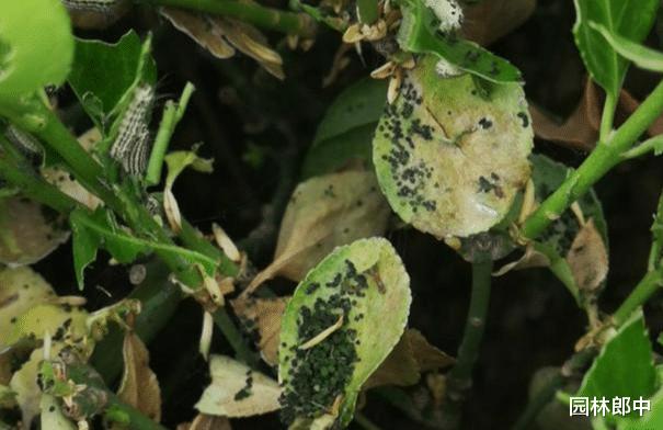很多朋友以为黄杨叶片上那些黑绿色的点状物质是黄杨绢野螟的虫卵,这是错误的,因为这些黑绿色的点状物质其实是黄杨绢野螟的粪便。