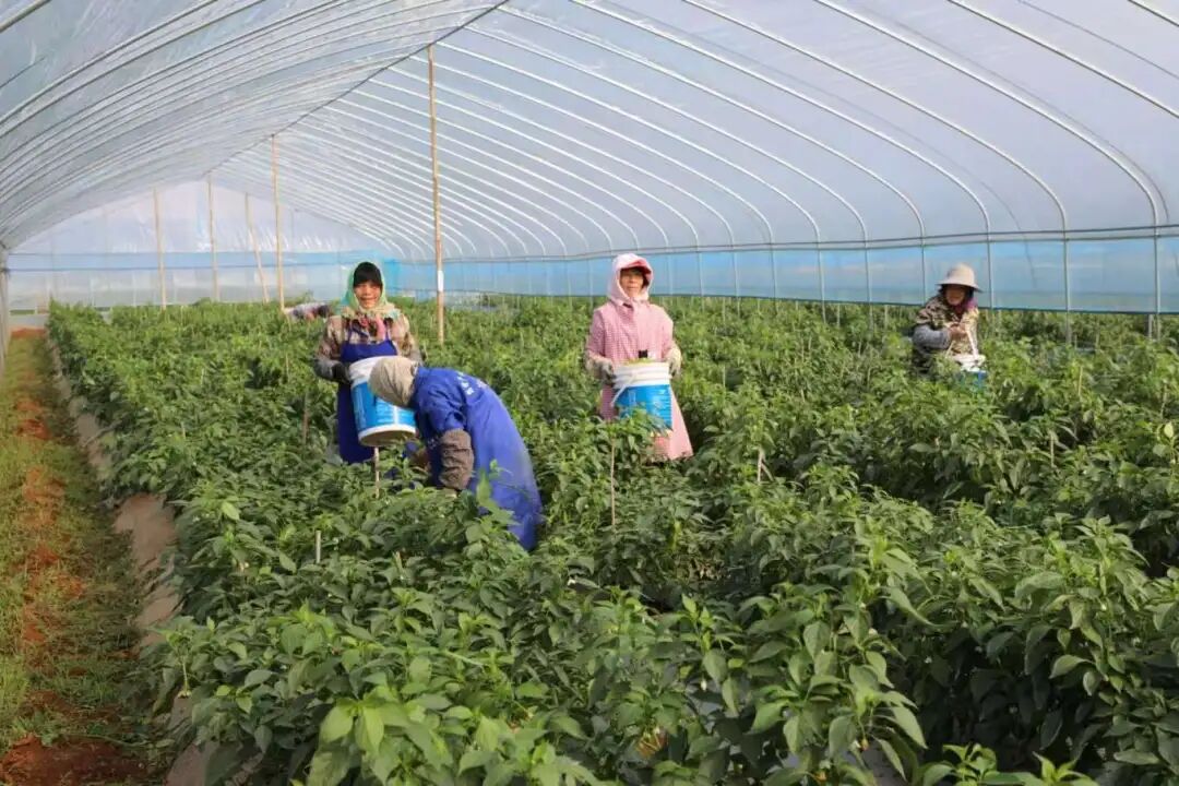 11月21日,在五里镇大成村连片辣椒种植基地里,20多名务工群众穿梭于沟垄间,把一根根鲜嫩的辣椒快速掐下装进编织袋,辛辣的气味飘散在空气中。已在基地工作5年的杨海娇是这里的老员工,她一边采摘一边说:“基地播种、采收时,我们就来基地干活,一天能挣110元。辣椒8月种10月收,现在采摘的是第三批了。”说话间,一袋袋辣椒被陆续搬上路边等候装车,即将运往贵港本地和广东市场。