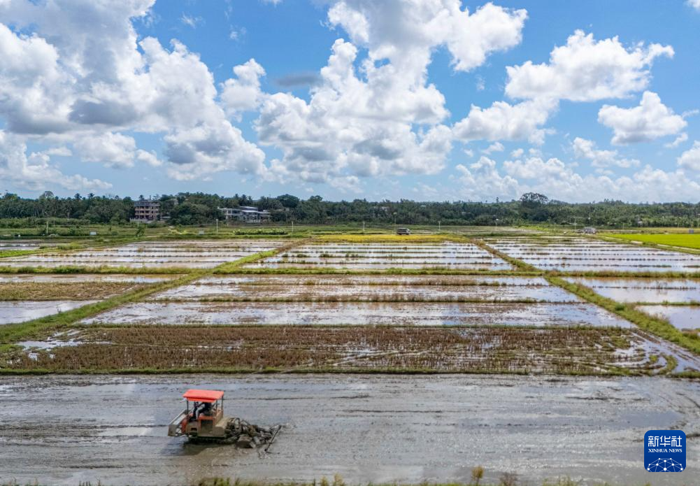 9月4日,海南省琼海市农机手在龙寿洋田野公园耕作(无人机照片)。